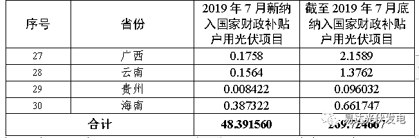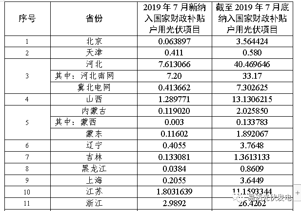 納入2019年國家財政補貼規模戶用光伏項目裝機容(róng)量統計表