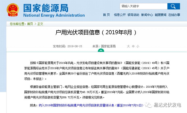 剛剛,國家(jiā)能源局發布(bù)最新戶(hù)用光伏項目(mù)信息(xī)(2019年(nián)8月(yuè)),詳細內容如(rú)下(xià):