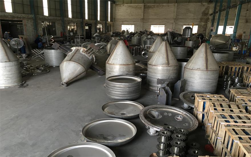 (一車間)正在進行生(shēng)產:不鏽(xiù)鋼(gāng)反應釜(fǔ)(高溫釜、包(bāo)覆釜)、冷卻釜、接收罐等焊接工序,拋光(guāng)處理後的不鏽鋼(gāng)反(fǎn)應釜封頭開孔、管口(kǒu)焊接等工序。