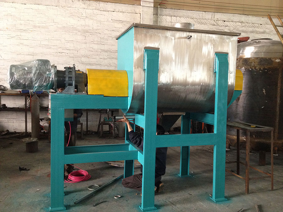 雙螺帶混合機是(shì)快速、應用廣(guǎng)泛的單軸混合機,U形半開管狀筒體內安裝雙層異向螺帶(dài)盤繞的攪拌器軸。盤(pán)旋的螺旋帶依附主軸運轉,外螺旋帶(dài)在動力的驅動下(xià),其(qí)盤(pán)繞形式配合旋轉方向(xiàng)把物料從U型倉兩端向中部地帶推動,能推使物料隨螺旋帶蝸旋方向推進,而內(nèi)螺旋(xuán)帶把物料從中間向兩(liǎng)端推動,形成對流混合。混合機臥(wò)式筒體底(dǐ)部中部開設出料口,外層螺旋帶的蝸旋結構配合主軸旋轉方向驅趕筒壁內(nèi)側物料至中部出料口出料,確保筒體內物料出料無死角。筒蓋可做成投(tóu)料口或全(quán)開式門(mén),以便於(yú)對設備進行清洗。可(kě)在混合機筒(tǒng)體外增加夾套,通過向夾套內注入冷熱介質來實(shí)現對物料的冷(lěng)卻(què)或加熱;出料形式一般為氣動、手(shǒu)動閥,與筒內壁較為齊平,減少物料堆積和(hé)混合死角現象。您可以提出您所需要(yào)的處理量、設備形式(shì)、規格要求或您需要加工的(de)物料的性質,91网站的銷售工(gōng)程師會提供讓您滿(mǎn)意的方案。